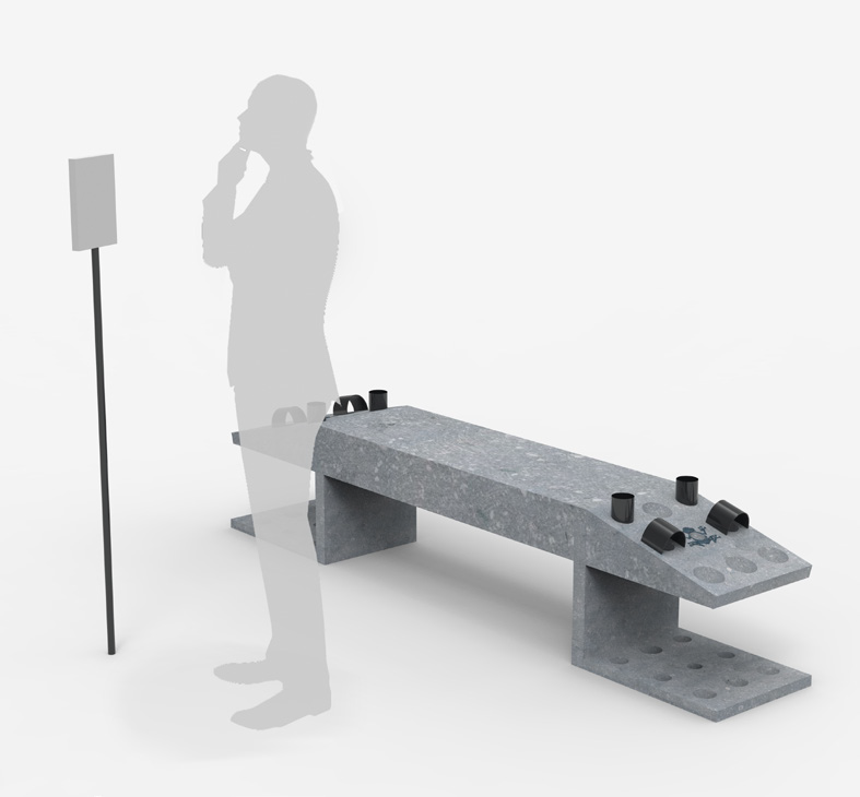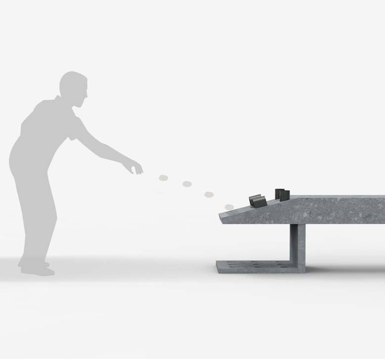 Grenouille est un banc permettant d’accueillir deux à trois personnes. Asseyez-vous simplement sur “grenouille” même si vous ne souhaitez pas jouer. En revanche, si vous désirez jouer, vous le pouvez grâce à la revisite du jeu flamand de la grenouille sur les côtés latéraux du banc.